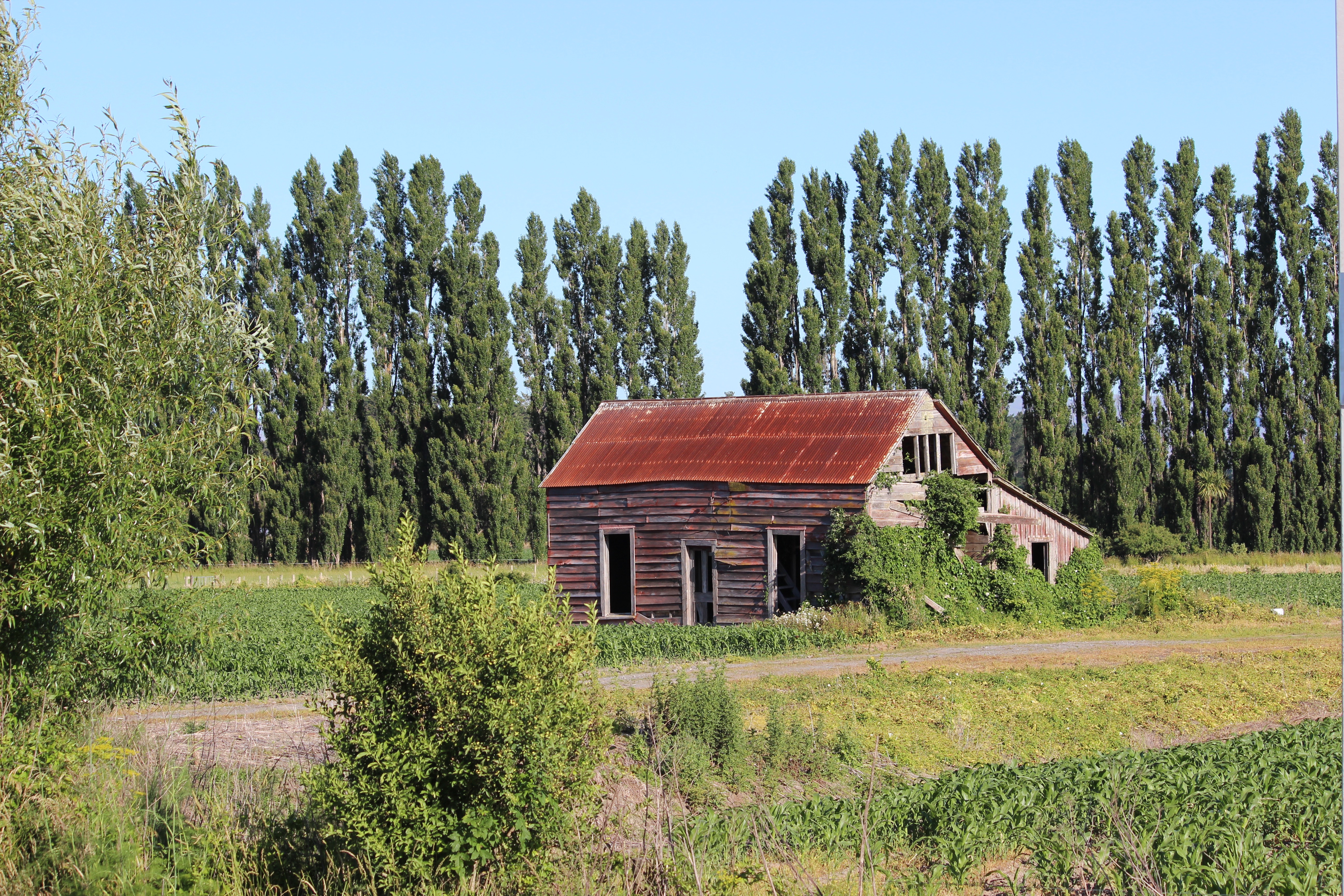 a red house in a flat land
